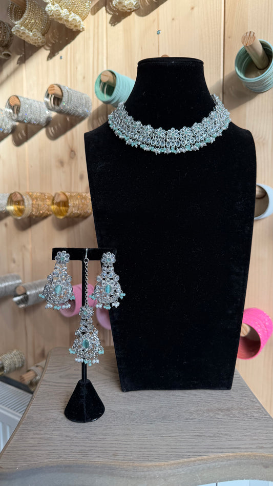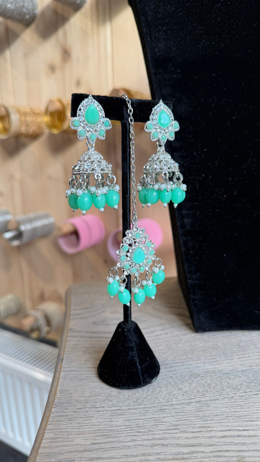 Mintgroene Indiase Choker Set met Jhumka Oorbellen – Traditionele Jewelry