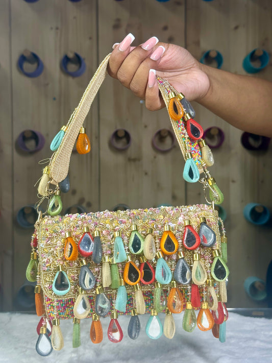 Multicolor feesttas met kralen en druppeldetails