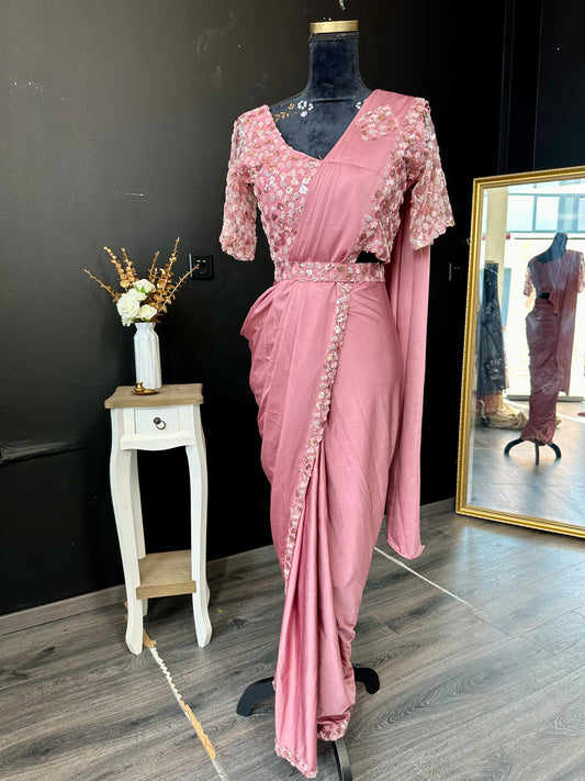 Mintgroene/Roze Mintgroene concept saree met bloemendetails – frisse Indiase feestjurk dames
