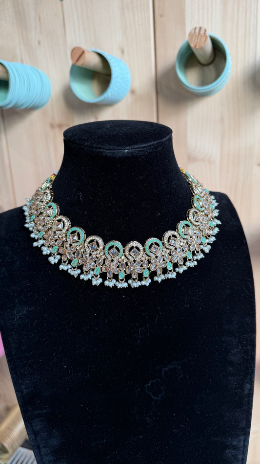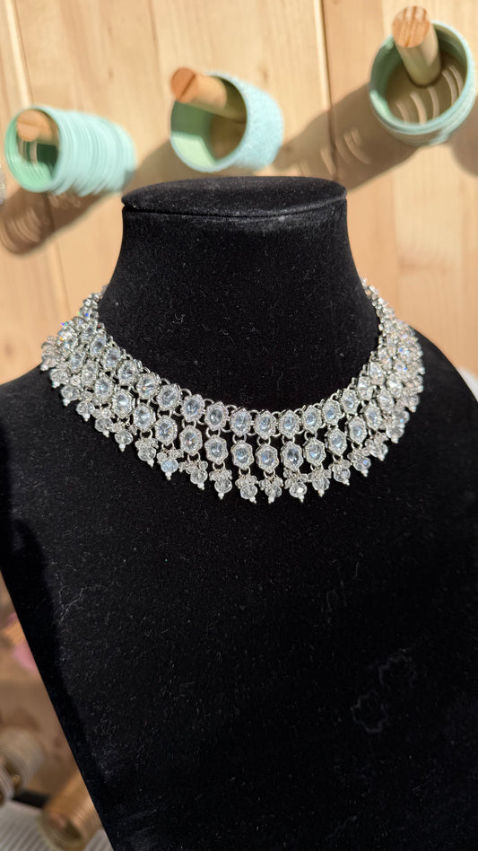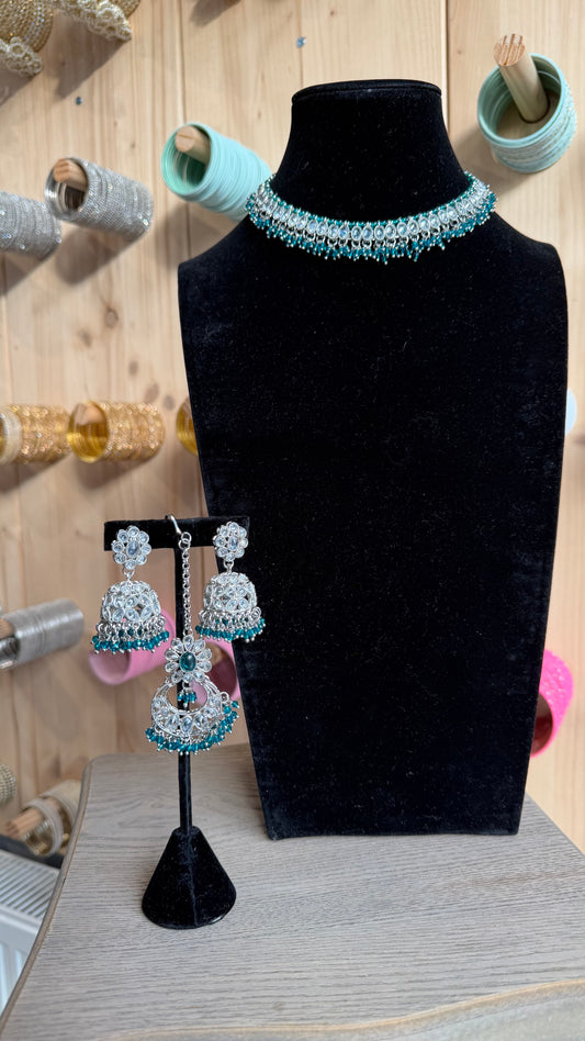 Elegante Indiase Choker Set met Kristallen en Jhumka Oorbellen