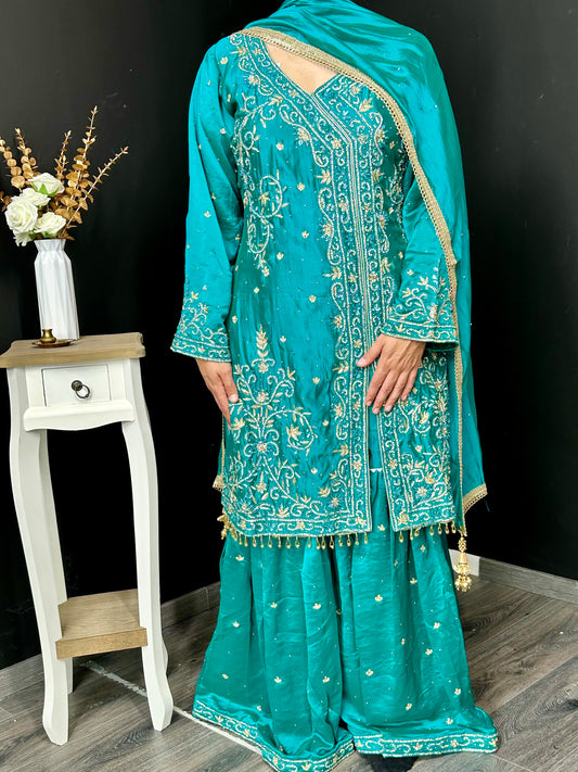 Sharara set met gouden borduurwerk – luxe Pakistaanse feestjurk