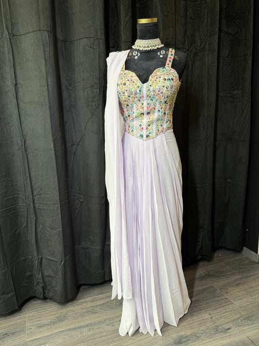 Ready to Wear Saree – Yellow & Lilac | Indian Wedding Guest Saree