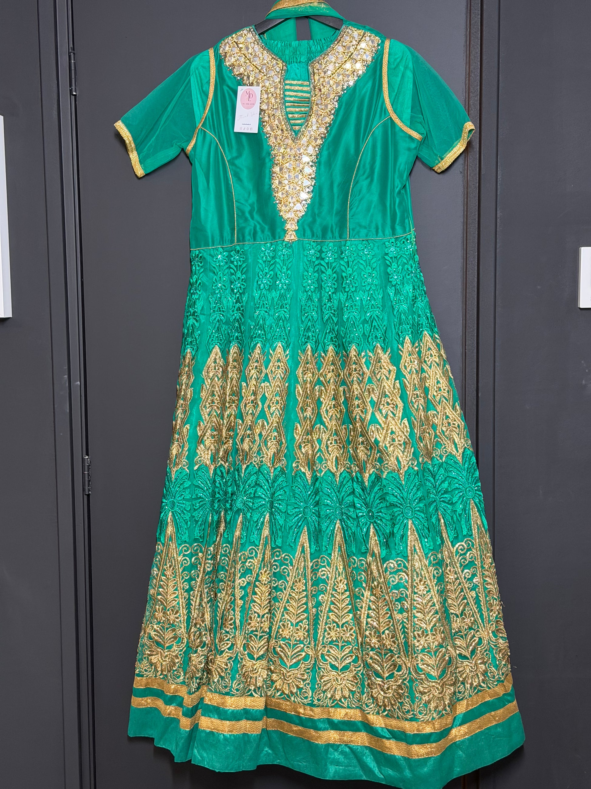 Groene Anarkali Set met Goud Details