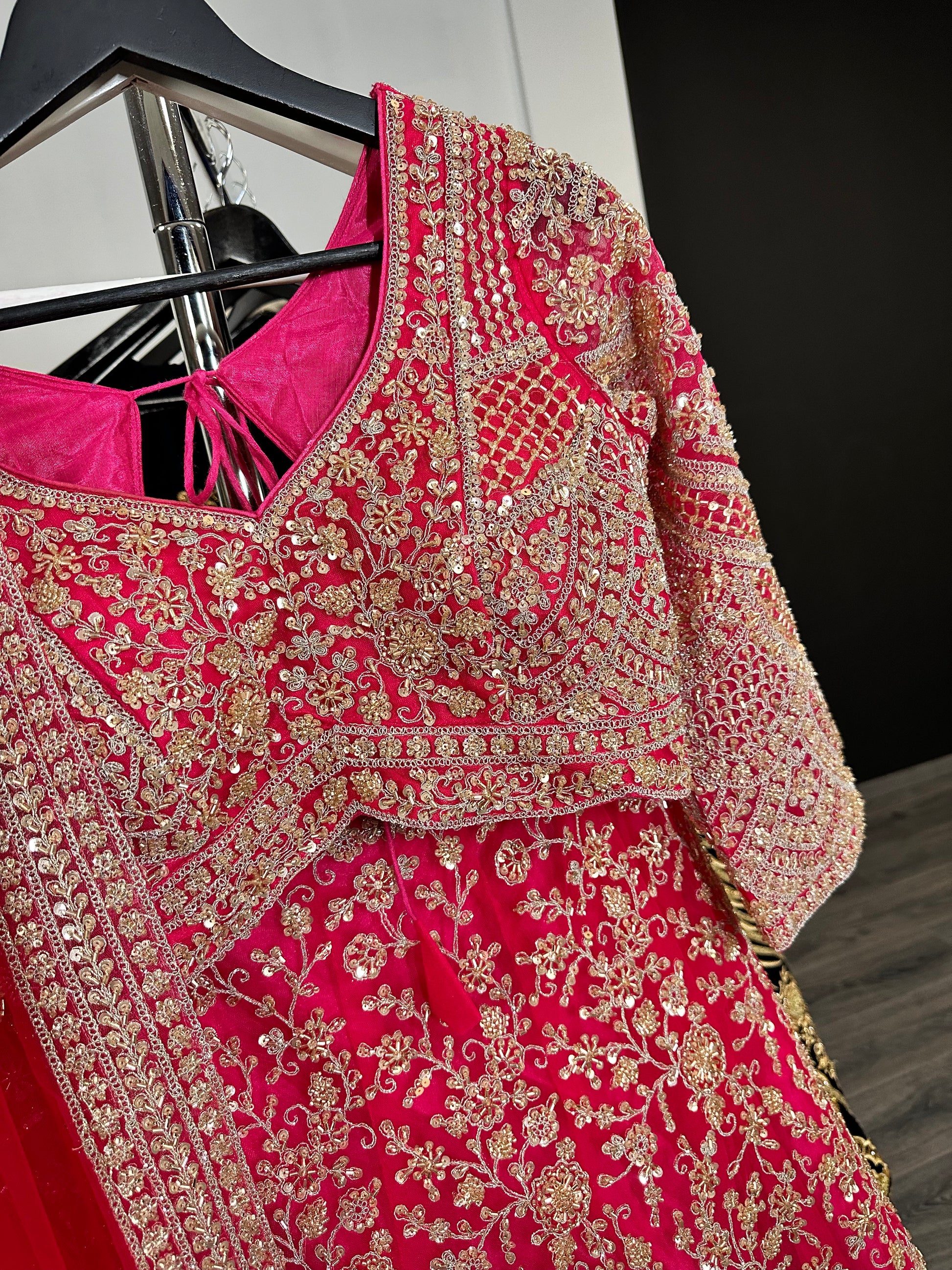 Party lehenga met goudborduursel en luxe dupatta. Ideaal voor bruiloft of receptie. Maat S/M (tailor-fit).