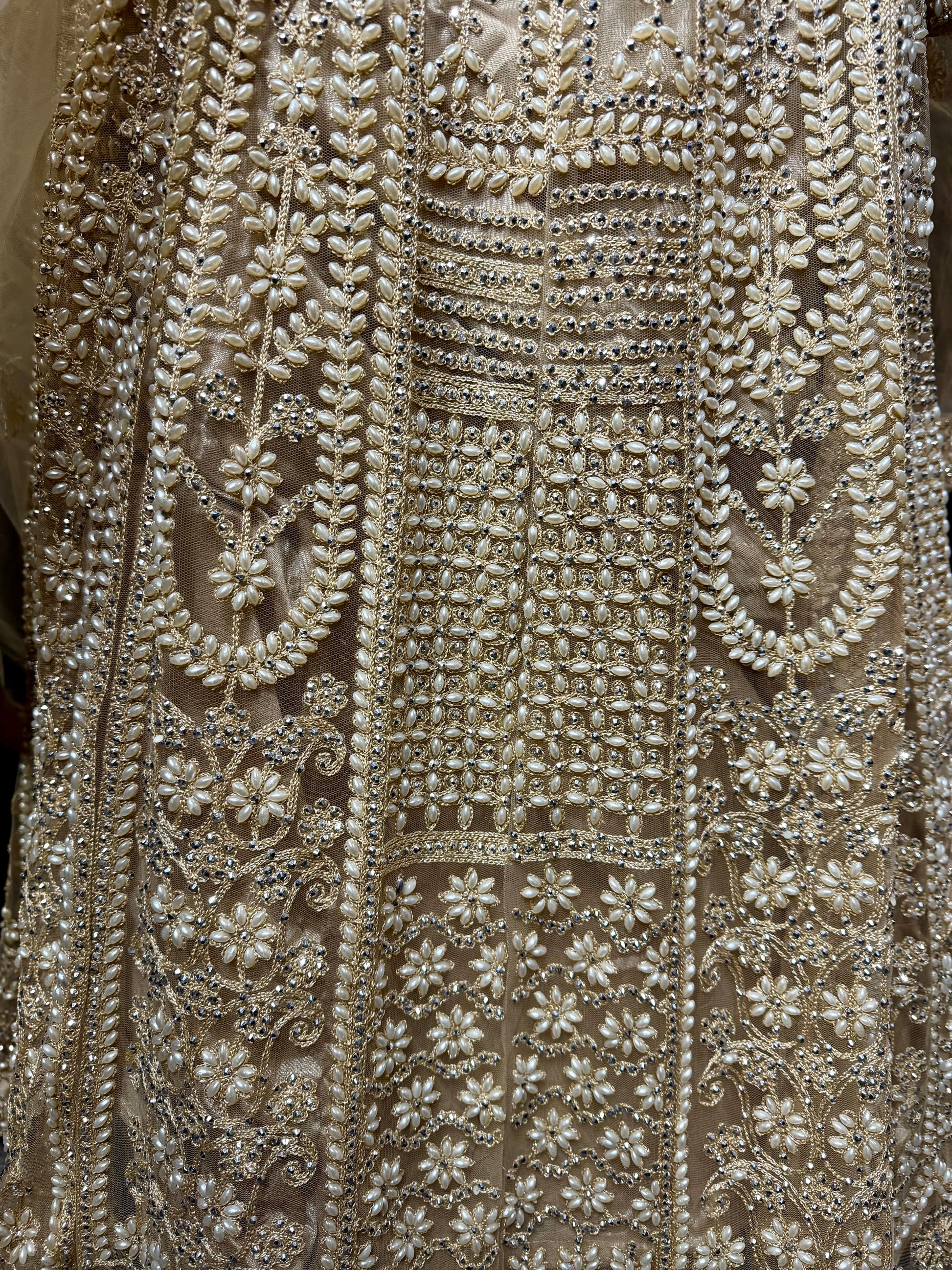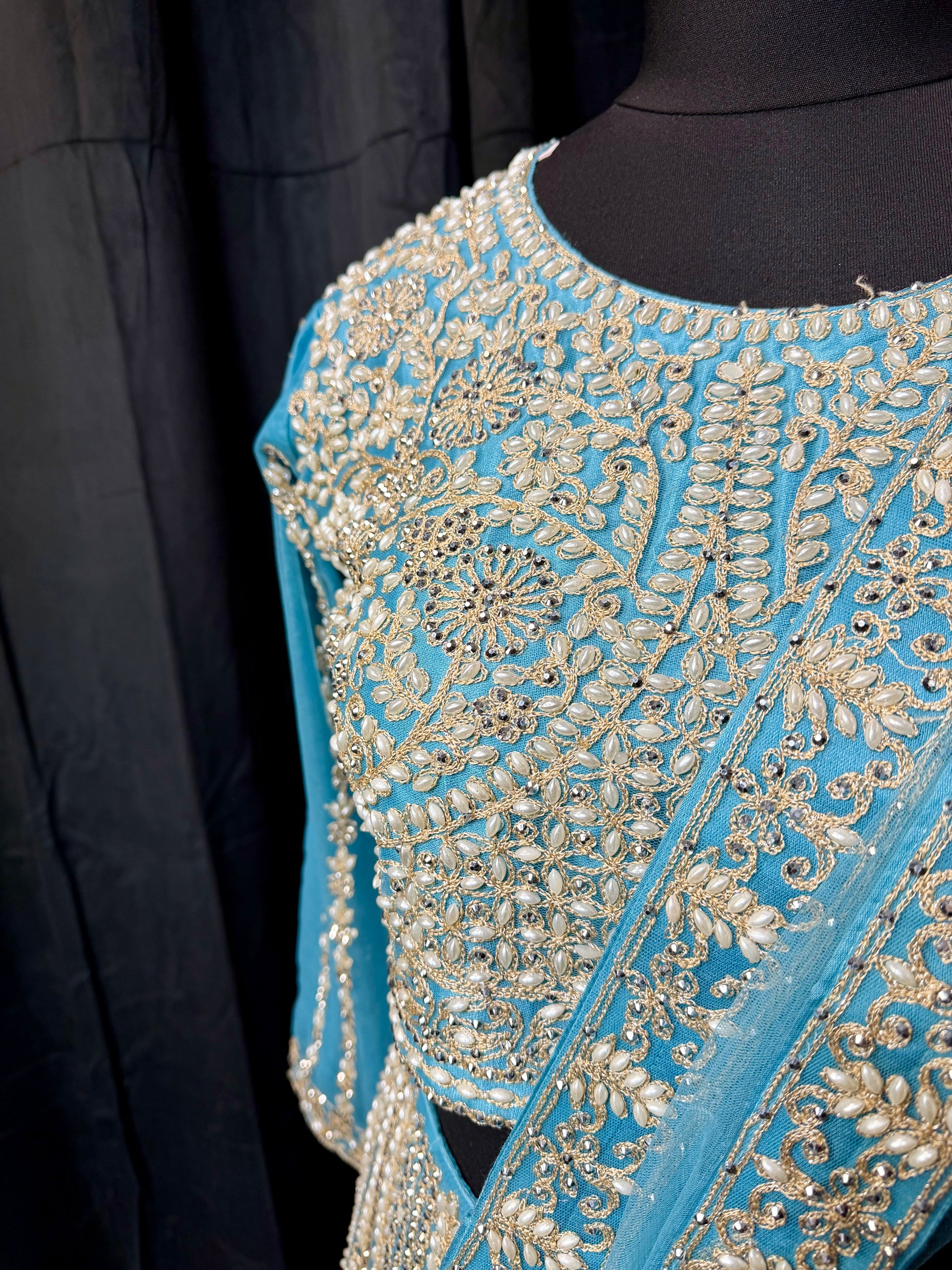 - Handgeborduurd met premium parels, steentjes & zardozi-werk