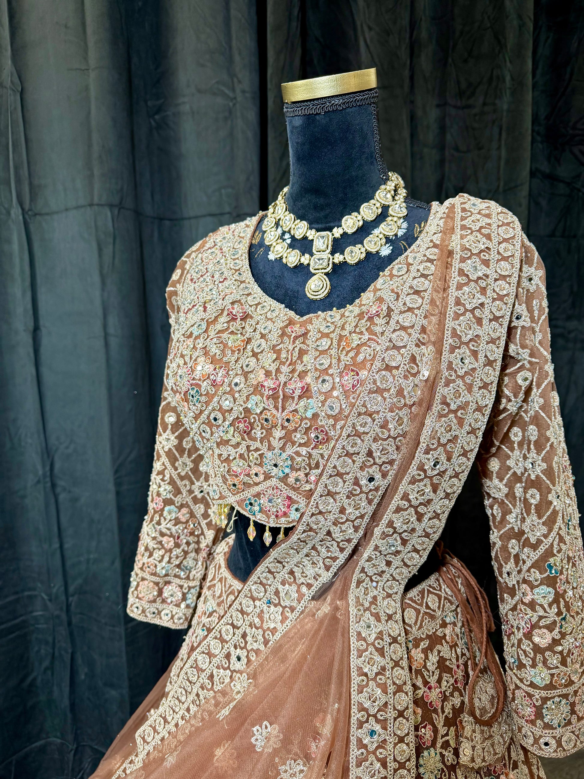 Heavy embroidered lehenga, mocha feestjurk, luxe Indiase kleding, My Desi Look