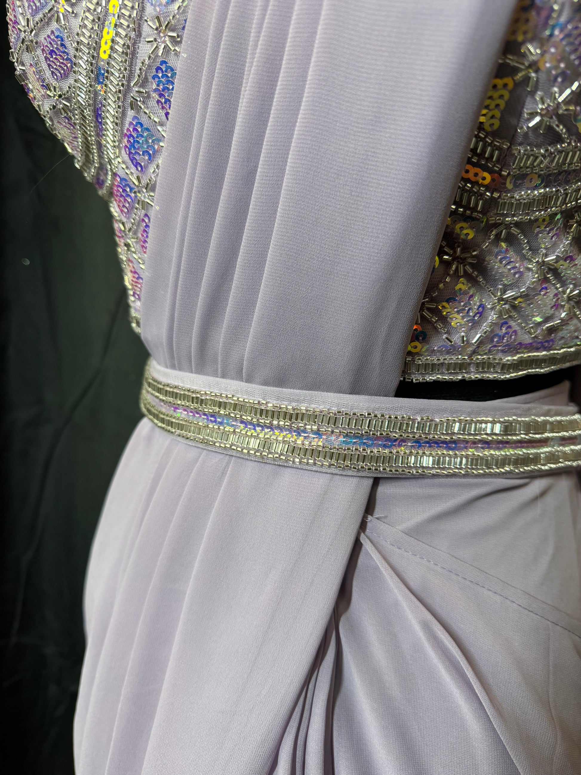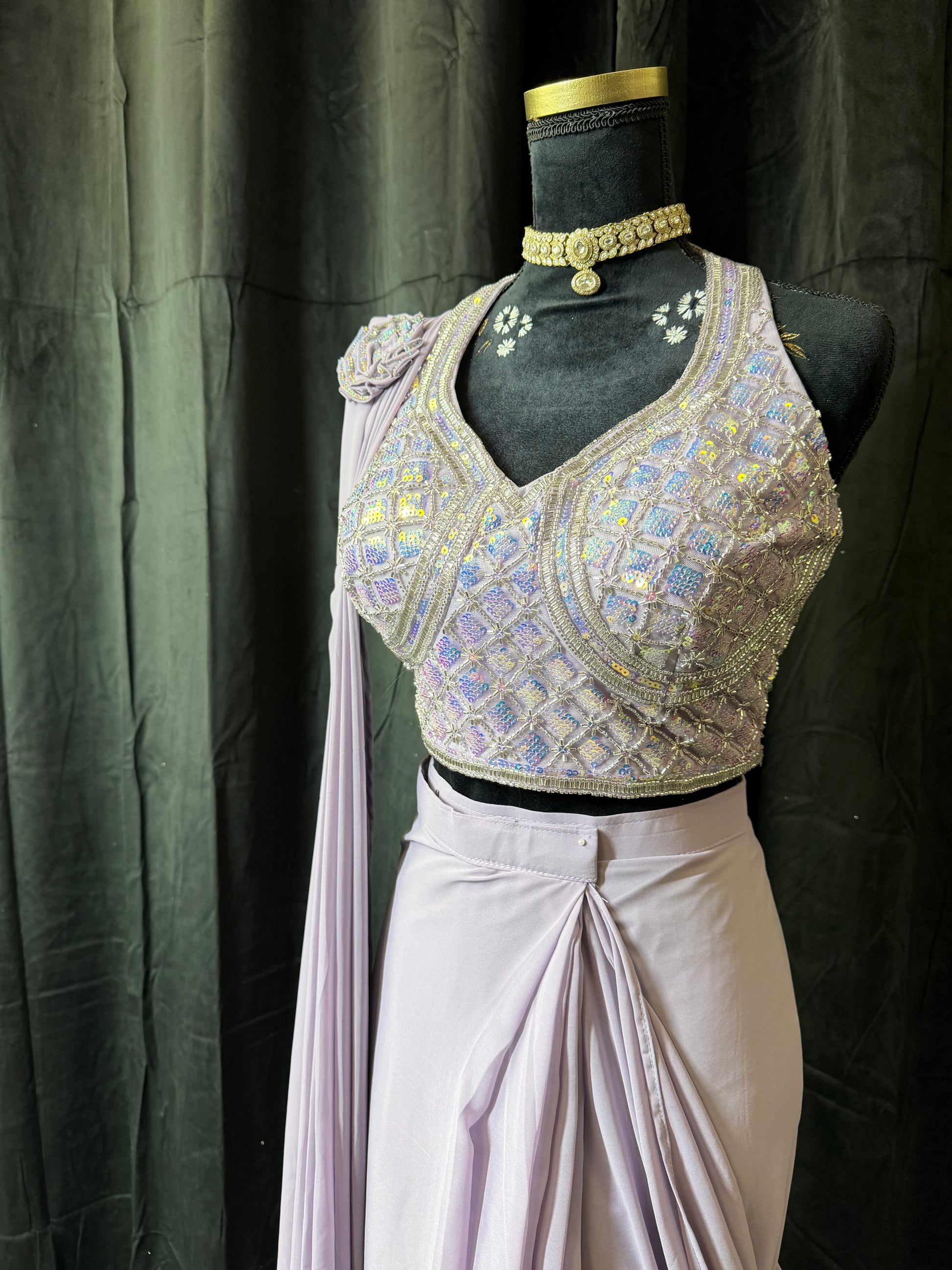 drape saree | ready to wear saree gown | Indo Western sari jurk | Indiase feestjurk | my desi look saree | lilac sari | grey sari | handwork saree dress