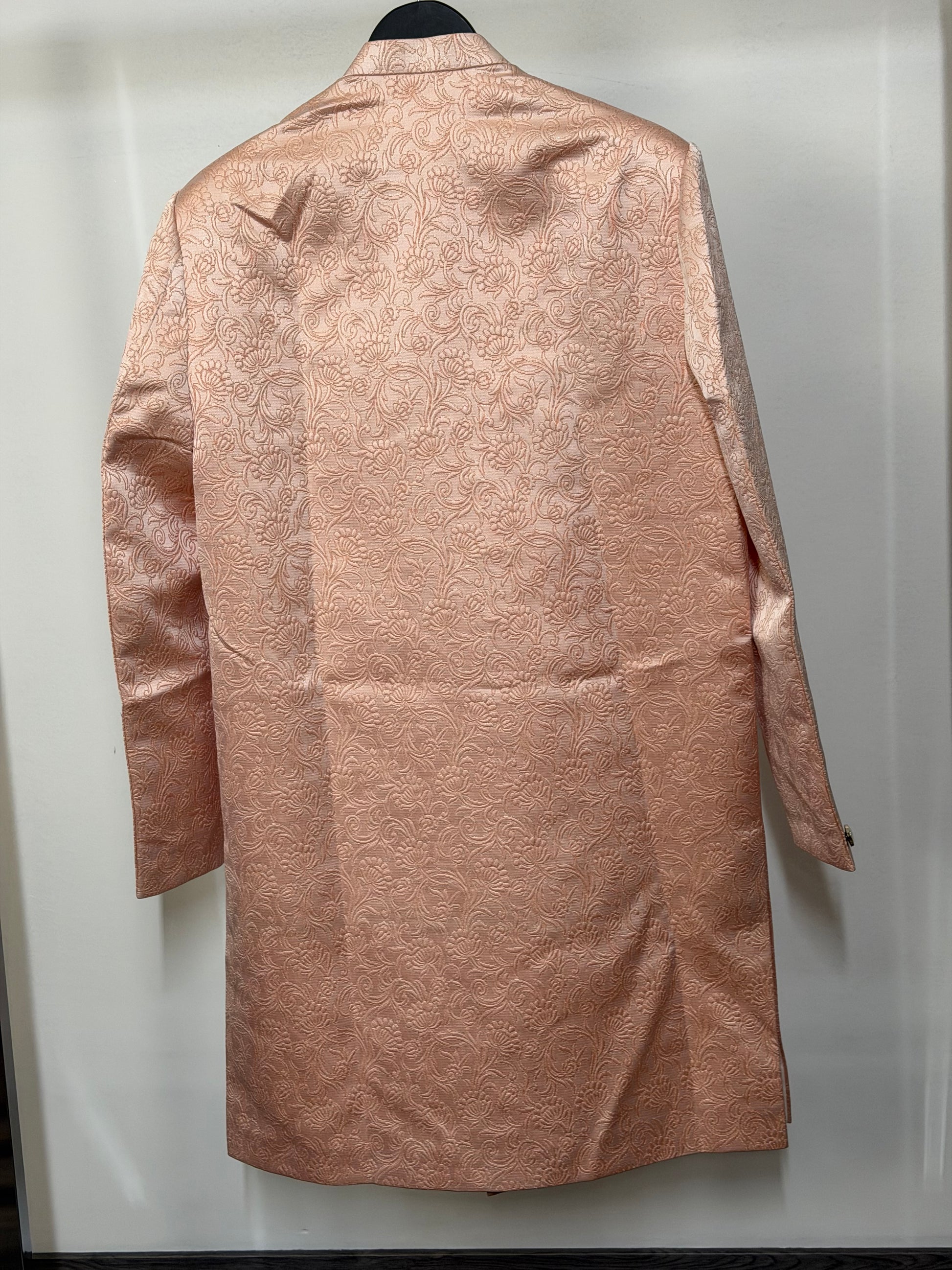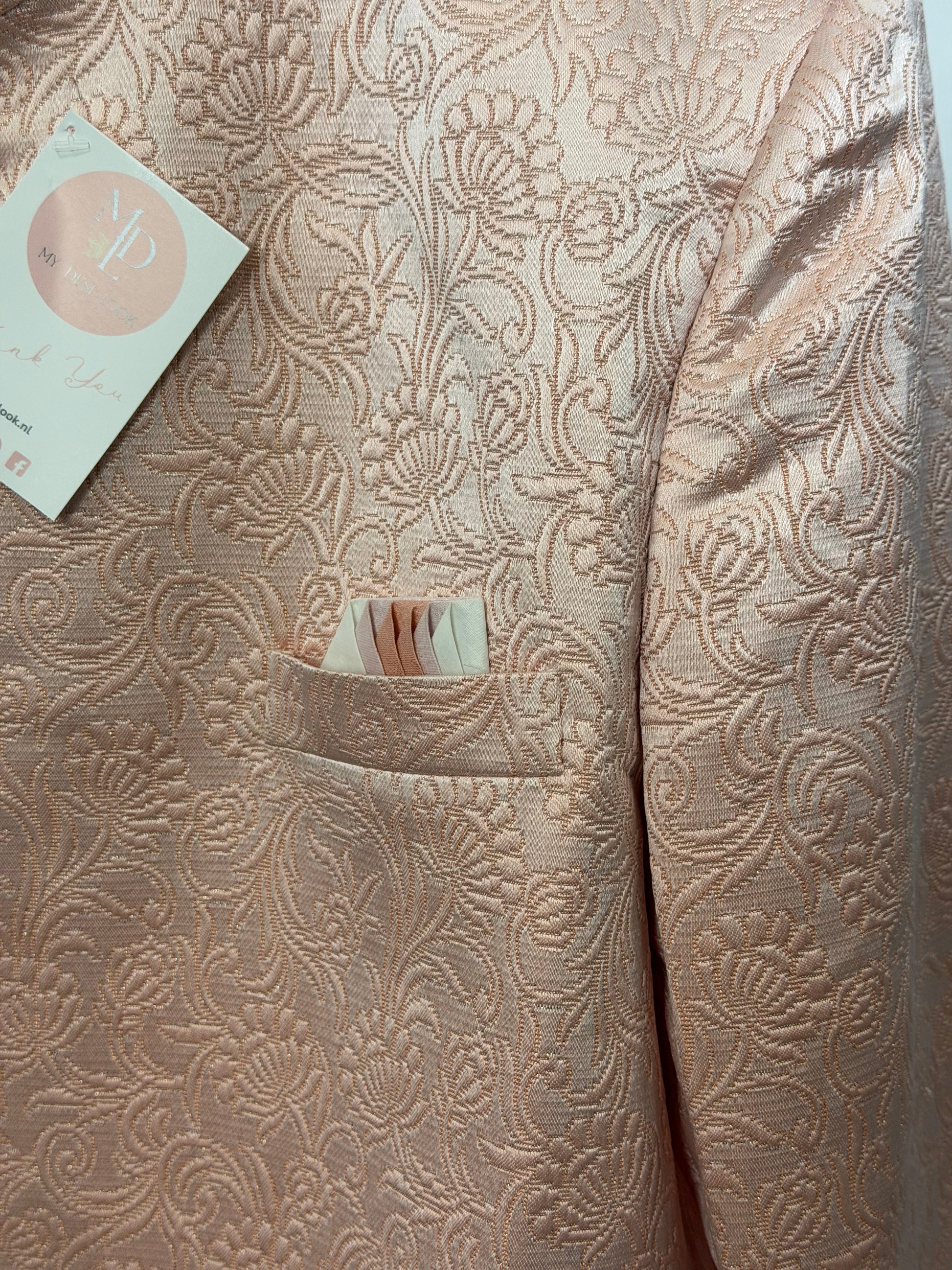 Moderne sherwani in een zachte rosegold tint, met fijn patroonborduurwerk en luxe afwerking. Perfect voor een stijlvolle groom look.