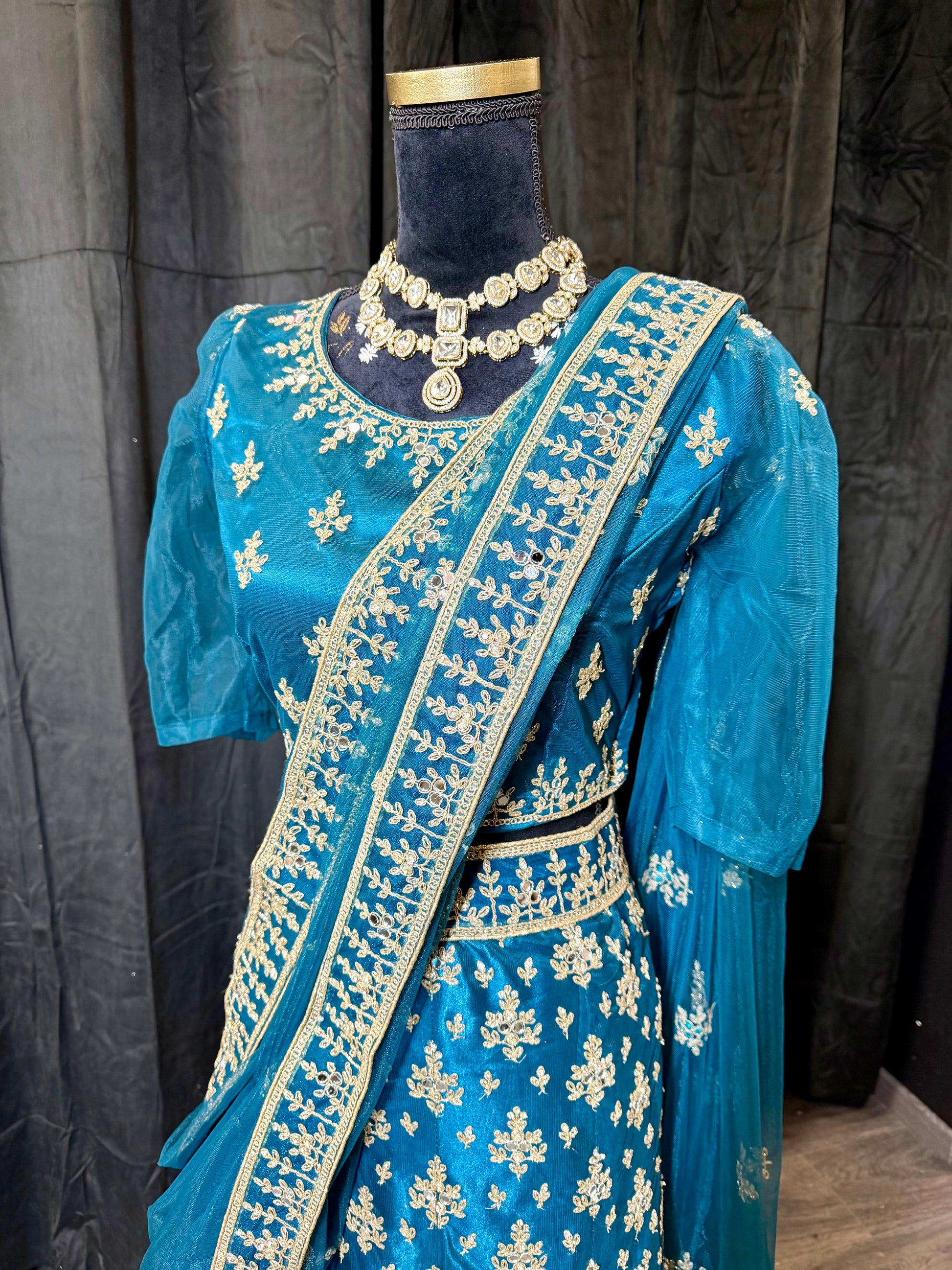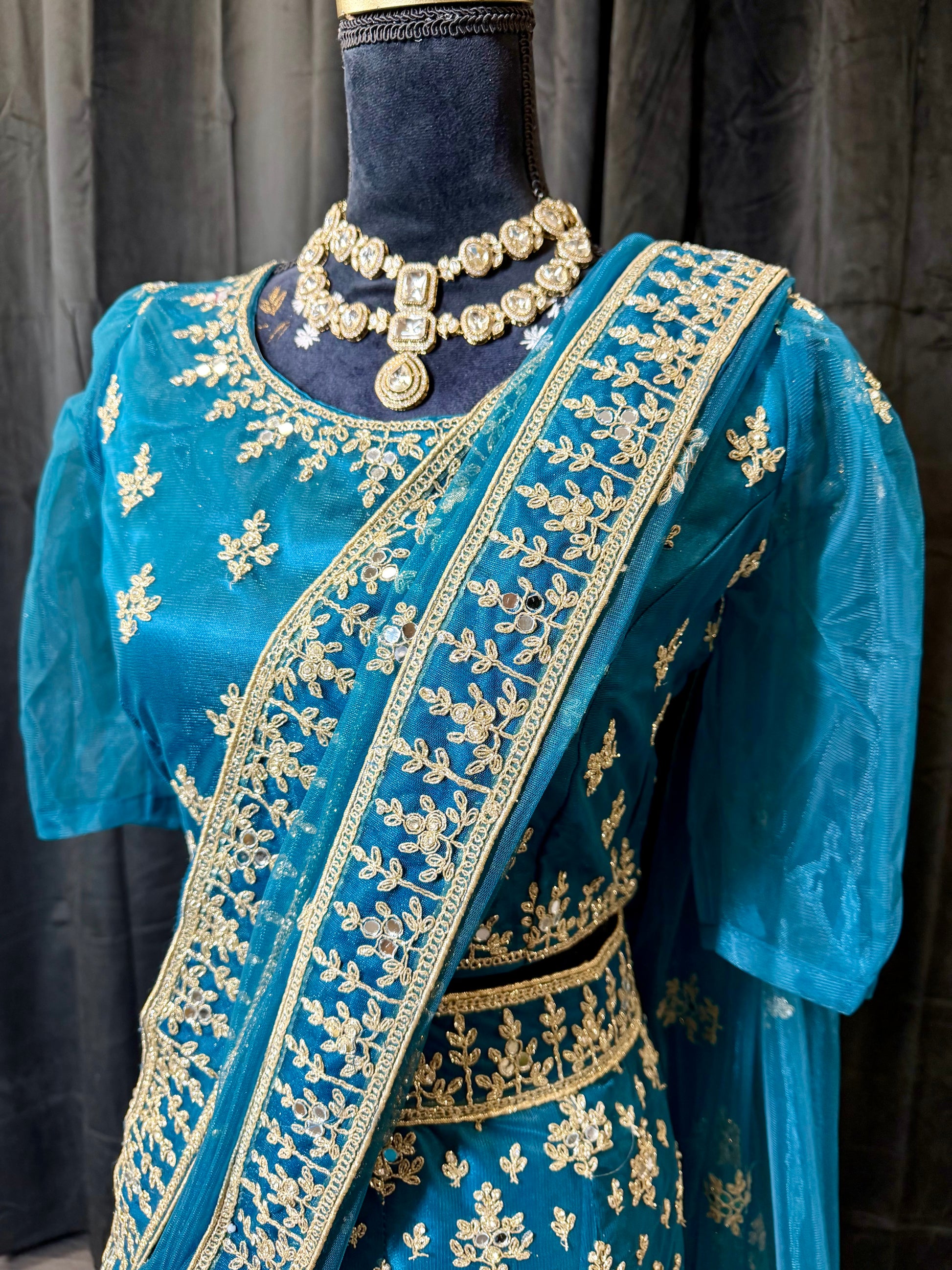 Teal Organza Floral Lehenga – Indiase Feestjurk