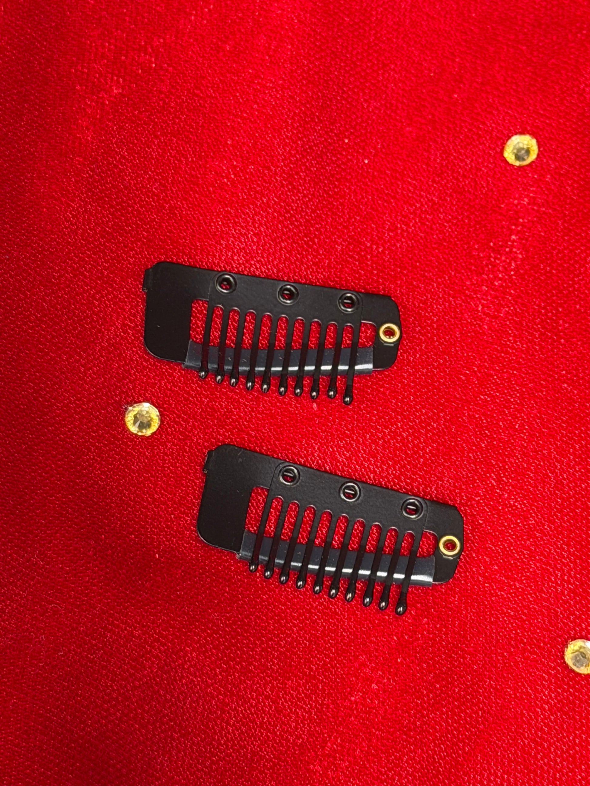 Stevige zwarte bevestigingsclips, ideaal voor het vastzetten van haaraccessoires en sieraden. Deze clips worden veel gebruikt voor traditionele Indiase accessoires en zorgen voor extra grip en comfort. Dankzij het compacte formaat zijn ze makkelijk te verwerken en geschikt voor professioneel en dagelijks gebruik.
